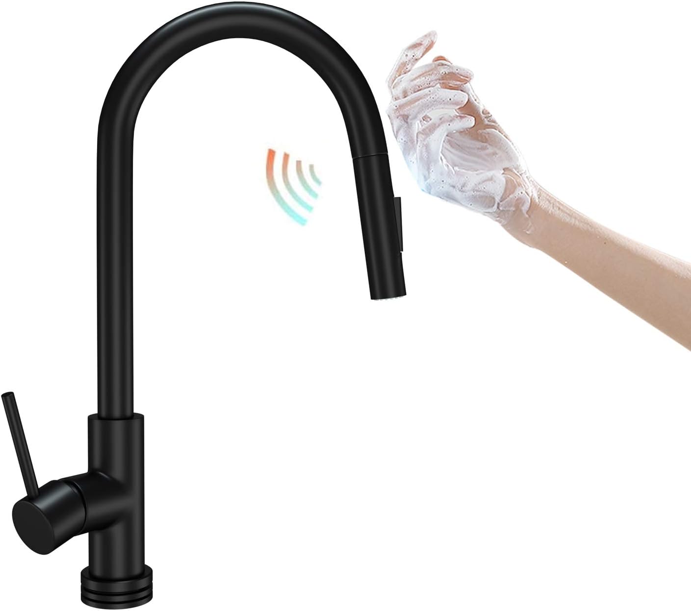 Black stainless steel touchless faucet.